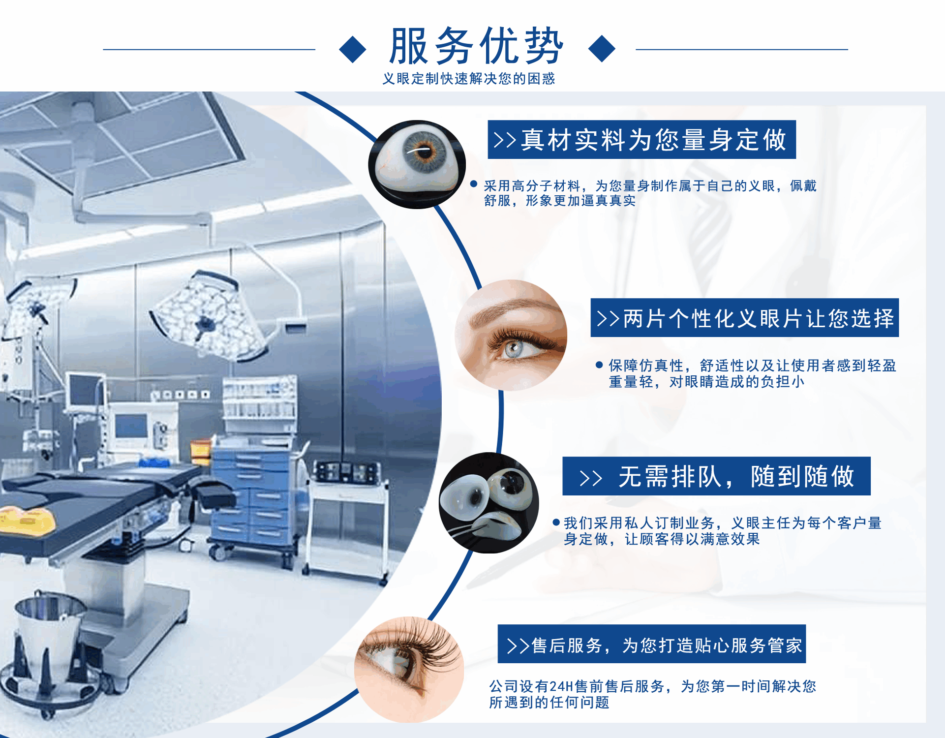 正目醫療科技有限公司致力于為用戶提供假眼,在哪里可以定制義眼,義眼哪家好,假眼價格,義眼價格,義眼費用,義眼公司,是集義眼定制、保養、咨詢?yōu)橐惑w的綜合性義眼定制企業。 獨創的義眼工藝結構,根據仿生物學原理,采用進口醫用植入材料:高分子材料、無毒素、性能穩(wěn)定、堅固耐用)、聚甲基丙乙烯阝-羥乙酯HEMA材料(軟性親水性材料),結合獨特的義眼個性化佩戴技術,按佩戴者健眼的形態(tài)、角膜、虹膜、及瞳孔的大小、色澤、血管紋理和脂肪分布,設計制作。擁有超薄、質輕、光滑、親水透氧、佩戴舒適和高逼真的特點。為保證佩戴效...